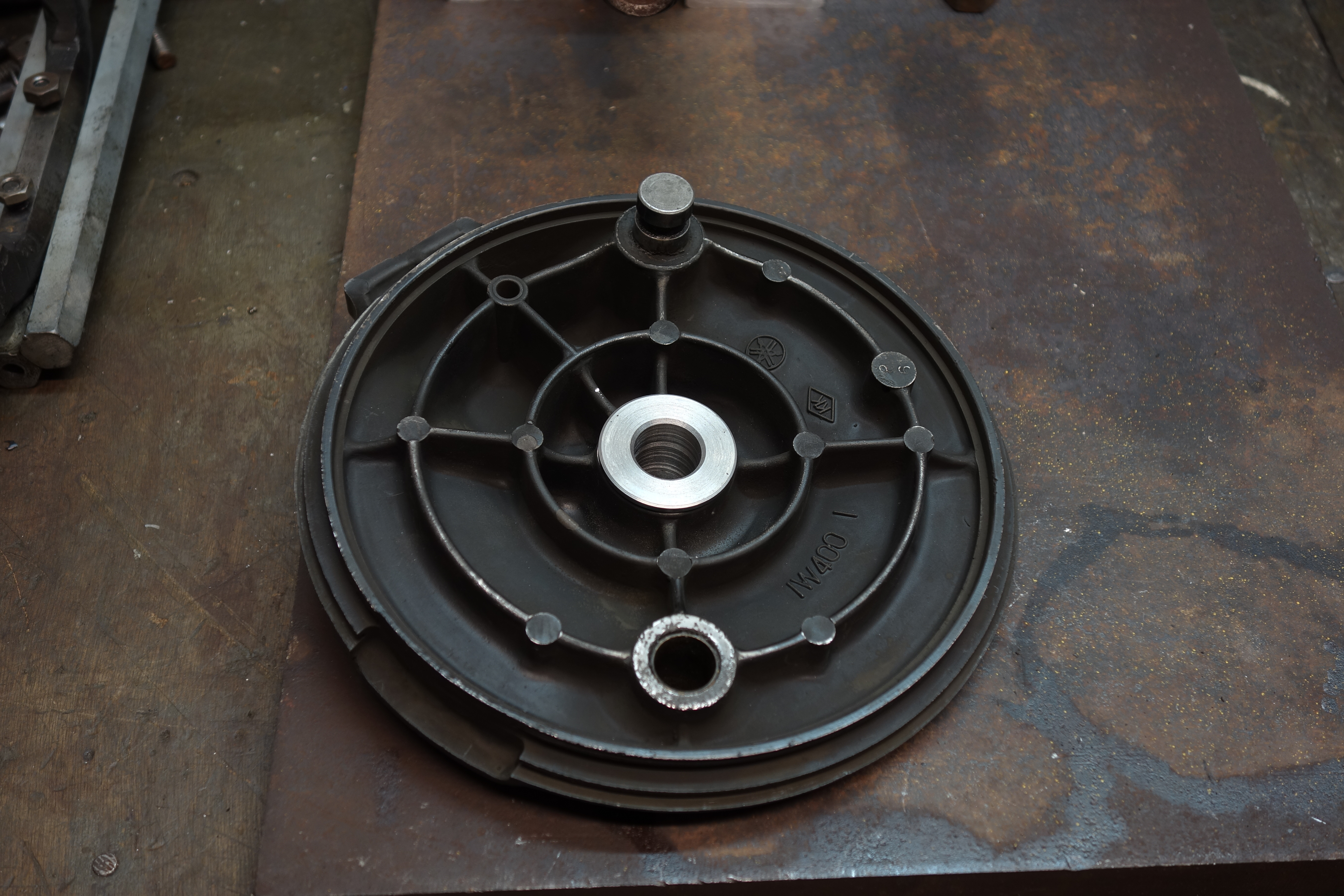 - J'ai ajouté 5/10ème coté intérieur sur l'épaulement de l'insert pour augmenter la longueur de l'alésage qui reçoit l'axe. Le flasque ne devrait plus frotter sur le moyeu.