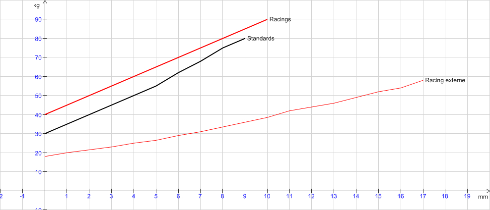 Un petit graphique de comparaison entre les ressorts standards et des ressorts Racing (probablement R&D)